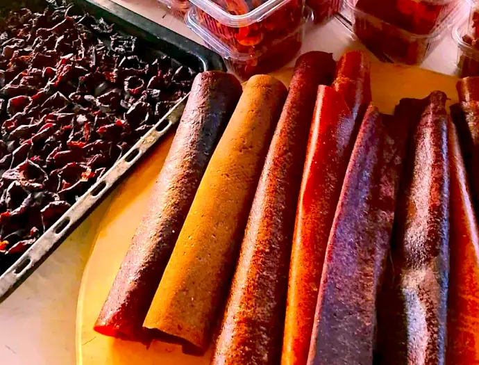 Dried fruit/berried and fruit leather made from chemical-free fruit and berries harvested in Lechkhumi.