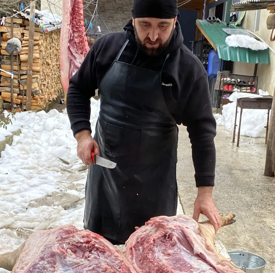 Traditional ham has always produced in my family in Racha and in the past, it was mainly consumed within our household and gifted to friends and relatives living in other regions. After growing up I moved to Tbilisi, where I lived for a while, however, Racha was calling me. So, in 2012, I decided to move back to Racha and to continue the family tradition of making local ham. I knew that to get the right flavour, I needed the local, Georgian breed of pig and the natural environment. Hence, I embarked on this journey and slowly, but surely, started to rebuild my family tradition and today, I offer my customers the real taste of Racha.